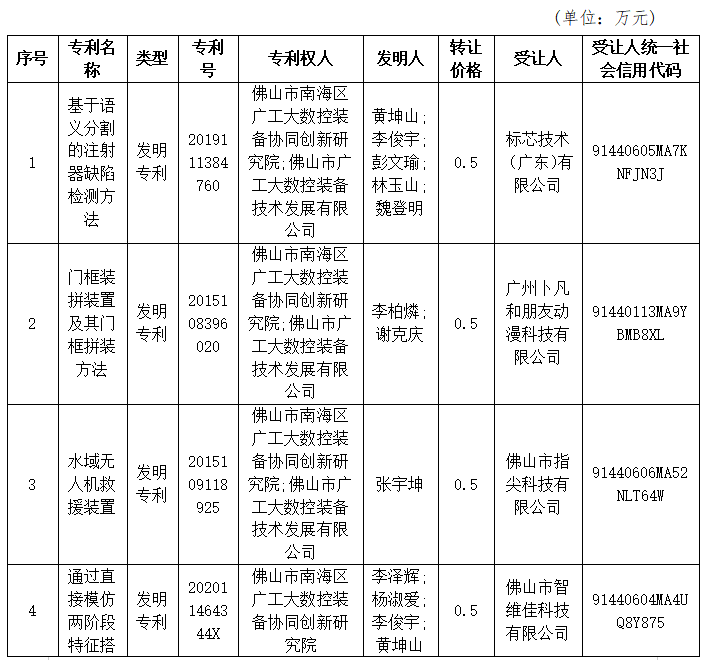 一、转让方:佛山市南海区广工大数控装备协同创新研究院